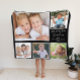 Célébrez Grand-mère avec cette couverture sherpa de collage photo personnalisée 5. Personnalisez avec cinq photos d'un petit-enfant ou de petits-enfants, customisez l'expression "Je t'aime" ou "Nous t'aimons", et si elle s'appelle "grand-mère", "Nana", "maman", "Abuela", etc. Vous pouvez également ajouter les noms et l'année des petits-enfants ou des petits-enfants, le tout en écriture blanche et typographie contre un arrière - plan noir.