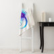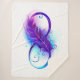 Infinity symbole with a beautiful feather painted in purple and blue bright colors on white background
