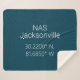 Sherpa couverture avec latitude et longitude coordonnées carte pour la US Naval Air Station NAS Jacksonville en Floride Style Roboto police blanche sur arrière - plan bleu marine.