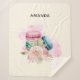 Une couverture Sherpa avec une image délicieuse. 3 macarons colorés, roses, verts et bleus avec un bouquet floral rose et un soupçon d'aquarelle rose. Délicieux et élégant aussi ! Arrière - plan jaune clair.
