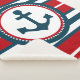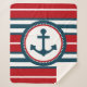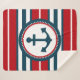 Design nautique avec décoration d'ancre en forme ronde sur arrière - plan rayé rouge, bleu et blanc