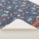 couverture Espace-orientée de sherpa pour des enfants ou des bébés avec un motif des astronautes de paresse flottant dans l'espace à côté des bateaux de fusée, des étoiles filantes, des planètes, des lunes, et des vaisseaux spatiaux étrangers en le bleu, le rouge rouillé, et le jaune. Ajoutez le nom de votre enfant dans les caractères gras avec du charme.