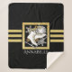 Le design comporte une paire de patins à glace sur une crête de flocon de neige avec arrière - plan parties scintillant noir et faux or. Cet élégant design de sports d'hiver sert de couverture Sherpa moderne et unique cool avec nom ou message personnalisé.