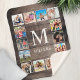 Créez votre propre couverture sherpa de collage photo personnalisée de 14 avec vos images personnalisées sur un arrière - plan rustique de planches de bois brun foncé de style ferme. Le design comporte également votre nom ou monogramme. Ajoutez vos photos, designs ou oeuvres d'art préférés pour créer quelque chose de vraiment unique.