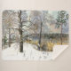 Artiste de Zolotareva. aquarelle sur soie - dessin manuel; pont de pierre à travers la rivière dans le village.Vue d'un pont enneigé dans les bois.