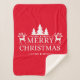 Cette couverture Sherpa chaleureuse et confortable est présentée avec un imprimé Joyeux Noël en blanc dépoli sur un arrière - plan rouge. Petite taille montrée Customiser cette couverture ou acheter tel quel. Image stock freepik.com all-free-download.com