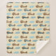 Une couverture Sherpa avec un avion en jouet en bleu et marron.