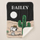 Regardez Spike assis à côté d'un cactus dans le désert la nuit.