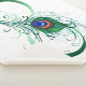 Le symbole de l'infinity with a bright, green, artistic peacock feather on a white background. Tattoo style.