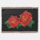 Deux roses rouges sur fond de noir, le tout dessiné dans un style traditionnel tatouage.