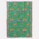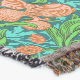 Jetez dans un William Morris, Art Nouveau, impression textile d'iris et de feuilles, numériquement rehaussés et colorés, en mandarine orange, vert citron et douce aqua, sur un arrière - plan profond turquoise / turquoise