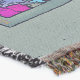 Dessin graphique, d'un bleu-gris, de forme gothique, fenêtre, avec des couleurs en ; bleu, violet, rouge, fuschia, gris et or ressemblant, vitrail, contre un, gris foncé, arrière - plan.