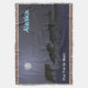 Une nuit d'hiver froide, cruelle, illuminée par la lune. Un meute de loups affamé chasse pour rester en vie. Le texte "Alaska" apparaît également en bleu et blanc brillant. Ajoutez votre propre texte supplémentaire.