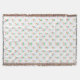 Woven blanket with colorful pinwheel pattern on a white background. It has a brown fringe border, shown in horizontal and vertical orientations.