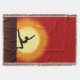© Sunny Mars Designs - Yoga Sunrise Warrior Pose Silhouette Qualité All-Season Tissé Lait Blanches - Cool, unique, dynamique rouge et jaune coutume 54" x 38" sur mesure polyester et mélange de coton tissé jeter couverture avec la silhouette d'une femme pratiquant le yoga avec le lever du soleil dans l'arrière - plan. Concept de santé, de fitness, de paix et de tranquillité. Parfait pour le yogis, les moniteurs de yoga, les professeurs de yoga, les amateurs de yoga ou les étudiants de yoga.