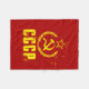 Le drapeau communiste simple avec le symbole du marteau et de la faucille entourés par le laurier tressent et dans le dessus une étoile et au fond le CCCP de inscription fait dans un rétro, un cru et un style utilisé.