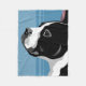Illustration plate d'art de Boston Terrier de couleur avec l'arrière - plan et les rayures bleus