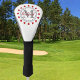 Cette couverture de conducteur de golf présente votre monogramme en gris dans un cercle encadré de points noirs et de doubles lignes noires. A l'extérieur du cadre noir se trouve un cercle d'étoiles rouges vives. Votre nom est écrit en rouge correspondant sur le monogramme du centre gris. Classique !
