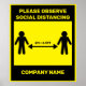 COVID 19 Social Distancing Sign Caution Signboard Poster. Mit dem Druck Ihres Firmennamens, um Ihre Mitarbeiter und Kunden offiziell zu machen und behalten