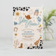 Saddle up for a rootin tootin celebration with this western cowboy birthday party invitation! Featuring playful illustrations like cowboy hats, boots, lassos, cacti, and a sheriff badge, this design sets the perfect tone for a fun-filled event. The bold cow print border and colorful text make it eye-catching and festive, while the rustic theme adds charm for little wranglers. Ideal for kids birthdays, this invitation is customizable with your party details and sure to delight guests.