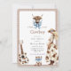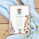 Célébrez l'arrivée prochaine de votre petit cowboy avec cette invitation de baby shower de charme. Doté d'une vache fantaisiste aux fleurs bleues délicates et d'un casquette de cowboy sucré, ce design reflète un style occidental rustique mais élégant. L'invitation affiche en évidence "Un petit cowboy est attendu !" ainsi que l'espace pour le nom de la future maman, les détails de l'événement et un code QR pour les RSVP. Parfait pour un baby shower rustique ou à thème cowboy, cette invitation donne un ton chaleureux et accueillant à votre célébration spéciale.