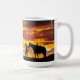 Cowboy en prière avec son cheval et une tasse à café étonnante couché de soleil