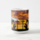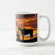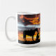 Cowboy en prière avec son cheval et une tasse à café étonnante couché de soleil