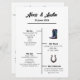 Mit diesem All-Inklusive-Programm, das alle Tagesveranstaltungen auf der einen Seite, die Hochzeitsfeier und Dankesworte auf der anderen Seite auflistet, rette du Papier. Das Design umfasst optionale Cowboystiefel und eine Hufeisengrafik.