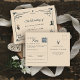 Eine rustikale Vintage Cowboy-Hochzeit RSVP Postkarte mit QR-Code, mit einem eleganten Western mit Sternen und einem Schädel. Dieses romantische und charmante Design eignet sich perfekt für eine Scheunenhochzeit, ein Fest im Freien, eine Hochzeit auf der Ranch oder ein rustikales Cowboykonzert. Mit seinem zeitlosen Western-Charme ist diese Einladungs-Suite der perfekte Set für eine warme und herzliche Feier unter freiem Himmel.