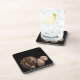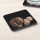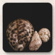 Ein Stillleben Foto von drei gepunkteten Muscheln auf schwarzem Hintergrund.
