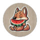 Das sonnige Bild eines Coyote, der eine Wassermelone isst. Der Rahmen kann entfernt und die Hintergrundfarbe geändert werden.