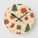 Cozy Christmas Pattern with Gifts and Trees Runde Wanduhr