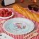 Crab Boil Seafood Familie Sommer Party Aquarellpapier Teller. Mit Aquarellfarben gestaltete Darstellung einer Krabbe mit elegantem Hintergrund. Fügen Sie den Namen der Familie und den Anlass hinzu, indem Sie auf die Schaltfläche "Personalisieren" klicken.