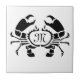 Eine illustrierte Krabbe, die von oben in einem schablonenförmigen Stil gezeichnet wurde. Die Klauen werden geöffnet, die Beine verteilt, und die Oberseite der Muschel ist ein weißer Raum für ein Monogramm. Das M ist für Monogramm kurz und kann für einen personalisierten Initial angepasst werden.