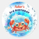 Crab White Blue Birthday Pool Party Boy Custom Age Runder Aufkleber