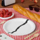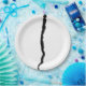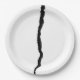 Schließen Sie den Blick auf einen Riss in einer weißen Oberfläche. Stilisierte minimalistische Fotografie. Schwarzweißbild. Funny Geschenke und Drucke für jeden. Original Papiertüte.
