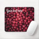 Makroansicht roter Cranberries. Guten Appetit! Schön essen! Wilde Cranberries waren wahrscheinlich Teil des ersten Erntedanks im Jahr 1621. - Die Amerikanische Ureinwohner und Engländer verwenden sie viel, kochen sie mit Zucker für Sauce, um mit ihrem Fleisch zu essen, und es ist eine köstliche Sauce. (John Josselyn, während er 1663 Neuengland besuchte) Mauspad. Personalisierbar. Sie können den Vorlagentext ändern oder löschen.