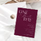 Minimalistische Hochzeitsdinner mit Typografie-Probe, die "noch einen Tag" sagt. Der Hintergrund ist Cranberry.