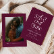 Stilvolle und elegante Save the Date-Karte mit Typografie-Text, auf der "rett unser Datum" in Cranberry-Rot steht. Sie können ein Foto auf der Rückseite hinzufügen.