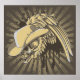 Crâne avec casquette et aile sur les rayons affiche personnalisée, avec un crâne cool avec casquette et aile en jaune sale et taupe sur arrière - plan grunge.