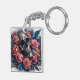 OEuvre d'art complexe avec un crâne magnifiquement détaillé, orné de roses, de plumes et d'un volière vibrant, symbolisant le contraste entre la vie, la mort, la beauté et la transformation dans un arrangement artistique élégant.