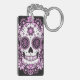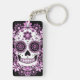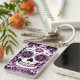 Le crâne à sucre Dia de los Muertos dans les tons colorés de violet entouré de fleurs.