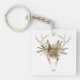 Crâne cerf & fleurs I par Naomi McCavitt. Il comprend un crâne de cerf avec des fleurs et des plumes placées sur sa tête.