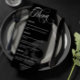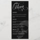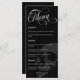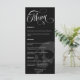 Goth menu mariage dans les tons fusain, noir et blanc avec crâne et jolies polices.