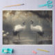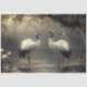 Crane Pair in einem Misty-Marsh-Dekoupage Seidenpapier