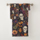 Un motif unique avec des crânes minutieusement détaillés au milieu d'un florilège vibrant de fleurs et de feuillage.
