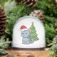 Cranky Grey Tabby Cat Red Hat Christmas Tree