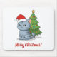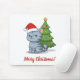 Cranky Grey Tabby Cat Red Hat Christmas Tree Mousepad