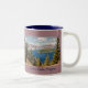 Tasses vintages de l'Oregon montrant Crater Lake en Oregon dans des couleurs brillantes avec les montagnes entourant le lac. Personnalisez le texte, plus de tailles et de couleurs disponibles !