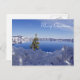 Schöner Crater See in Oregon macht einen friedlichen Hintergrund für Ihre Winterfeiertagspostkarte.